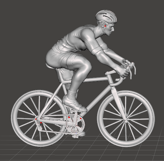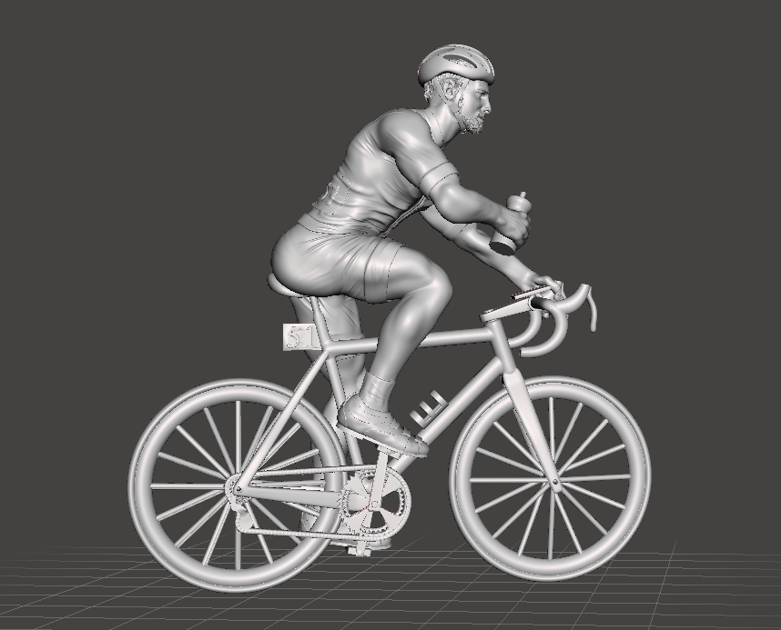 Ciclista de compentencia, equipamento completo, disponivel no tamanho de 3,4cm em 2 modelos. Um com o personagem segurando uma garrafa de agua e outro sem.