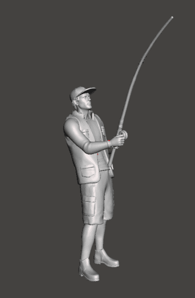 Homen pescador, com vara de pescar e bone, nesta versao o pescador esta em pe